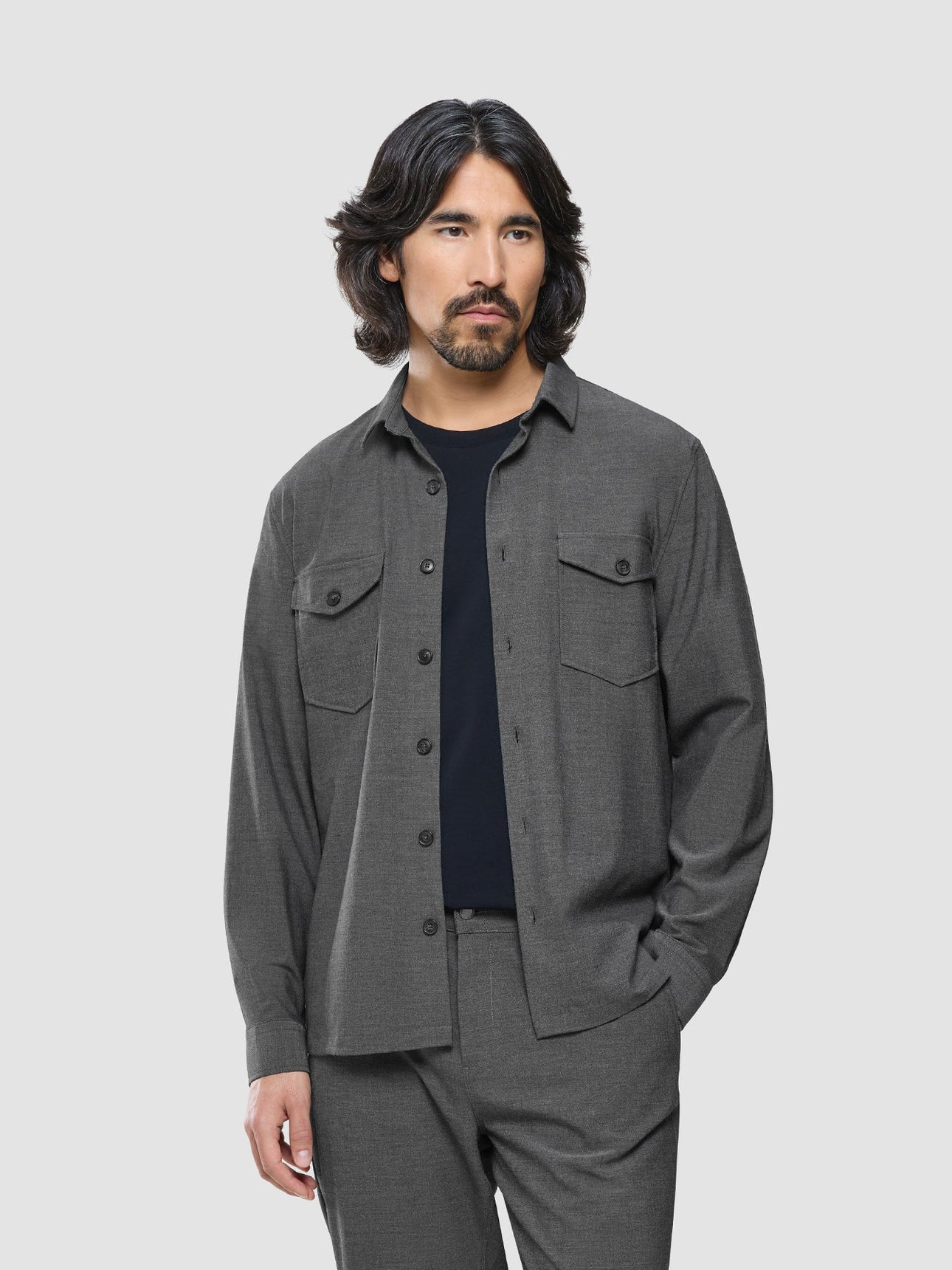 The special blend of fabrics adds the aspect of innovative functionality: Made from a mix of recycled polyester and viscose, our Overshirts are durable as well as breathable. Furthermore, the materials are super stretchy and cause less wrinkling – so you can wear the comfortable jacket all day, and what’s more, it makes for a great travel companion. To preserve its high quality and shine, we recommend sending the overshirt to the dry cleaner’s.