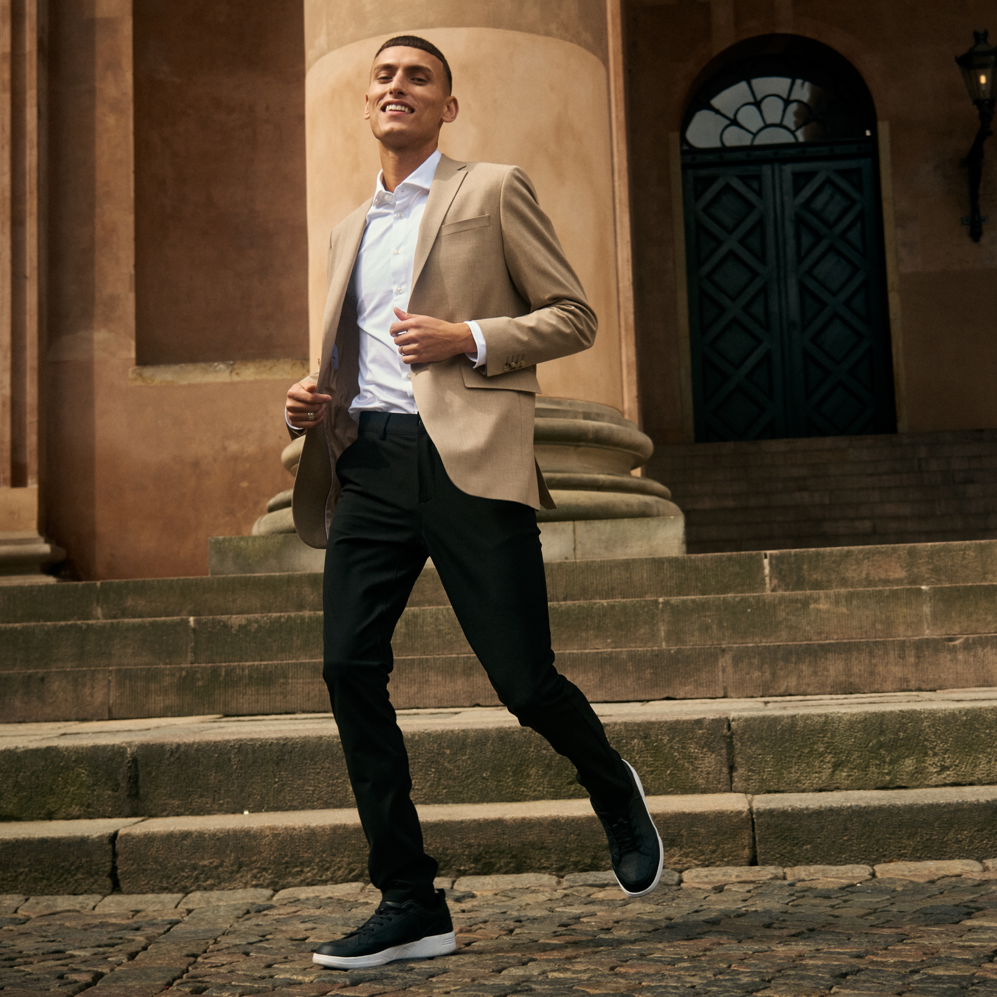 Again: chinos are a no-brainer, and they work with all and any shoe. And they will always look different, depending on whether you pair them with classic leather shoes, modern Chelsea boots or your favorite sneakers. They are the perfect blank canvas to draw attention to your footwear, if that’s what you’re after.
