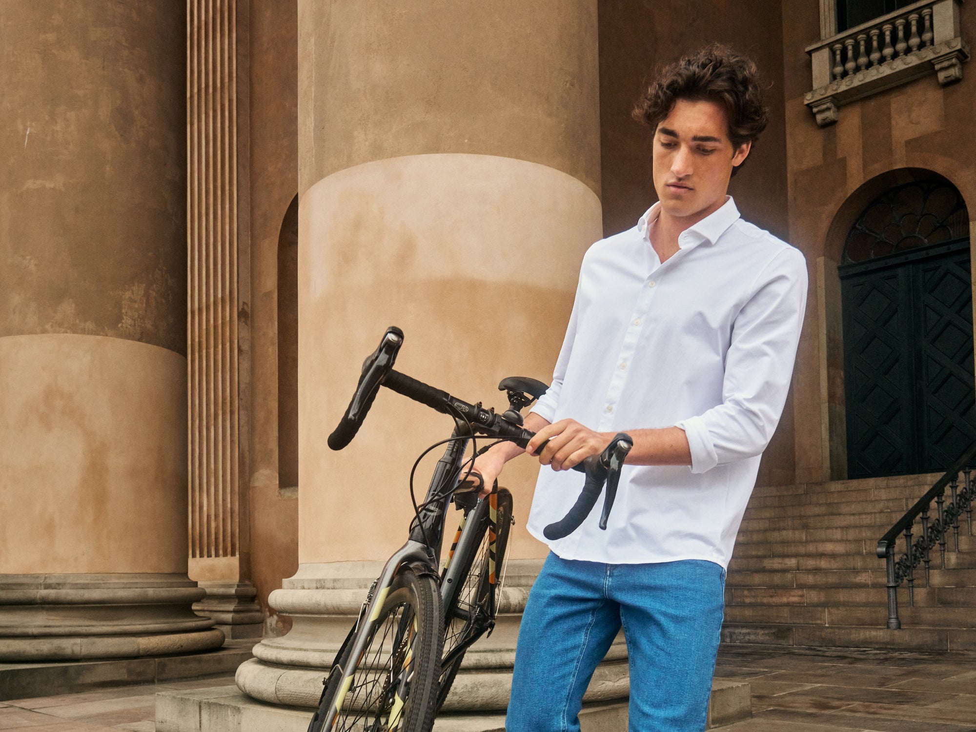 Stylish, comfortable AND functional? At SHAPING NEW TOMORROW, the fastest-growing menswear brand in Denmark, we find solutions to your everyday problems. Scandinavian design meets innovative technologies – like our performance stretch. Consistently produced with family-owned manufacturers in Portugal.