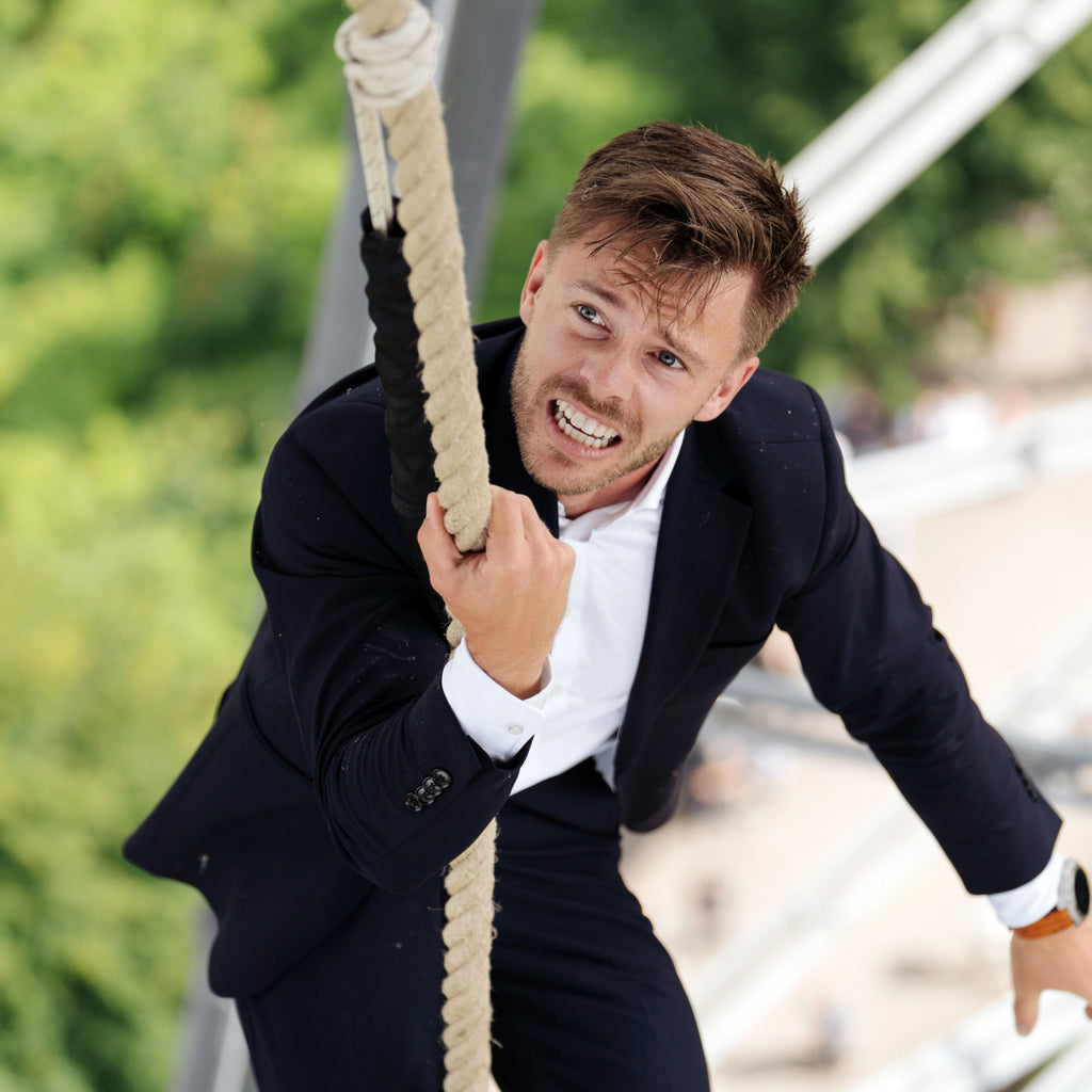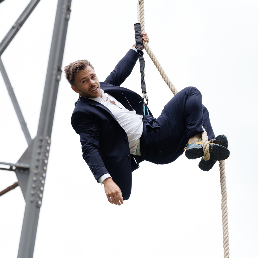 Watch Leon overcome his fear of heights to complete the world’s longest rope climb in a suit and dare to challenge yourself.