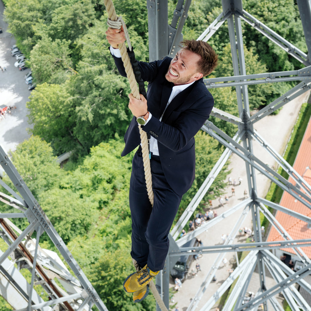 Wanting to push himself to the limit, Leon will undertake the daunting challenge of climbing an entire 50 meters to reach the top of Aalborg Tower, using just a free-standing rope – all while wearing our Essential Suit.
