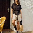 Home/.../Women's Linen Shirt Short Sleeved Espresso
